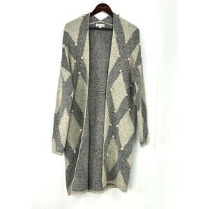 Neiman Marcus Women Sz L Long Open Cardigan Diamond Print Popcorn Stitch Cozy E4