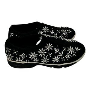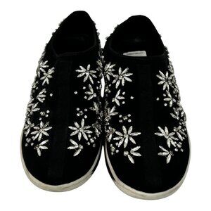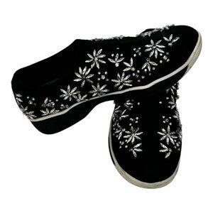 Neiman Marcus Women's Black Crystal Embellished Fusion Slip-ons | Size 9B
