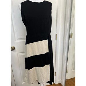 Neiman Marcus Women's Black and White Sleeveless Round Neck High Low Hem.
