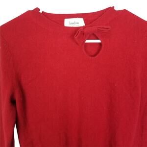 Neiman Marcus Womens Cashmere Sweater Bow Tie Neck Size S Holiday Xmas Preppy