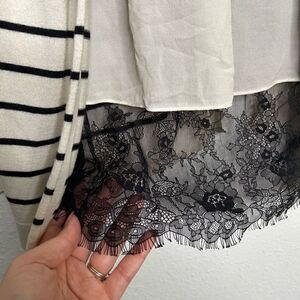 Neiman Marcus Women’s Cashmere Wool Silk Striped Open Front Lace Cardigan Size S