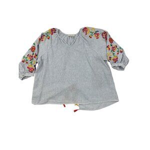 Neiman Marcus Women’s Embroidered Floral Tassels Cotton Blouse Size 1X