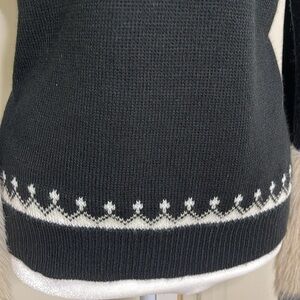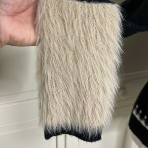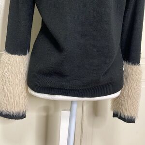 Neiman Marcus Womens Faux Fur Fair Isle Cable-Knit Sweater Black Size Small