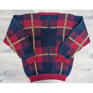 Neiman Marcus Women’s Hand Knit 100% Wool Sweater Plaid Check V-Neck Size M Vtg.