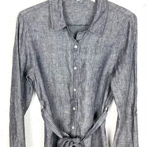 Neiman Marcus Womens Linen Shirtdress Roll Tab Sleeves Blue Mini Size Small