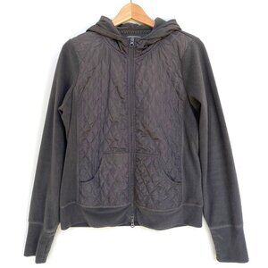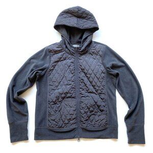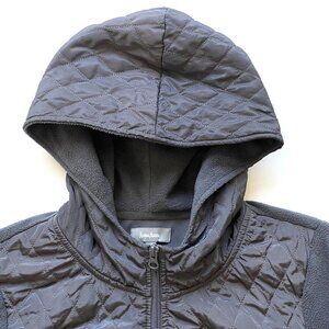 Neiman Marcus Womens M Hooded Fleece Quilted Jacket Full Zip Gray Sweatshirt