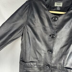 Neiman Marcus Women’s Medium (M) Black Genuine Leather Overcoat Jacket, Classic