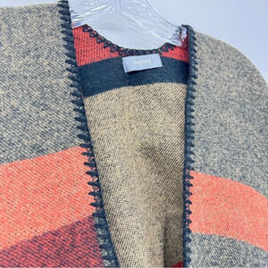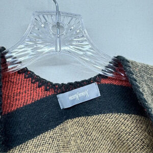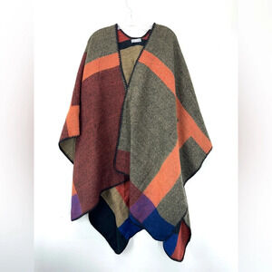 Neiman Marcus Women's Poncho Knit Shawl Geometric Color Block One Size Brown/Red/Coral