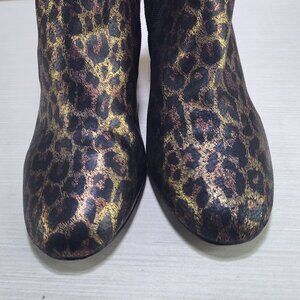 Neiman Marcus Womens Size 6.5 Leopard Animal Print Metallic Boots Shoes