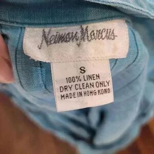 Neiman Marcus Women's Turquoise Linen Pleated Collared Button Down Shirt , Oversized EUC sz S