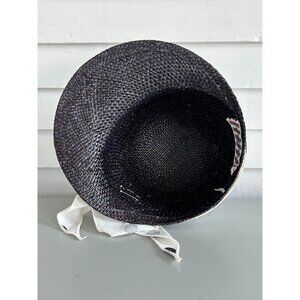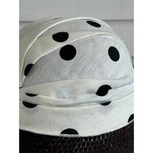 Neiman Marcus Women's White Black Polka Dot Woven Straw Cap Hat with Scarf Bow