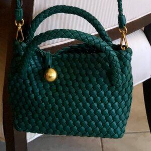 Neiman Marcus Woven Vegan Leather Handbag with Gold Sphere Clasp