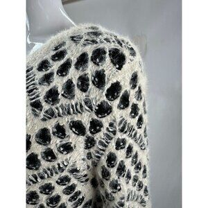 Neiman Marcus XL Fuzzy Knit Black & White Polka Dot Sweater