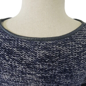 Neiman Marcus Zipper Front Faux Leather Blue Sweater Jacket Women's XL