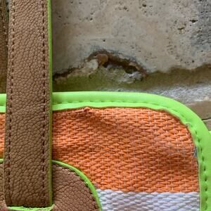 Neiman Marcus bag large tote Orange/white/green trim open double strap purse