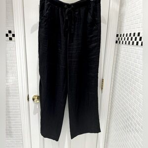 Gorgeous Neiman Marcus black 💯 linen draw string waist wide leg pants. Side Pockets.Size 10.
