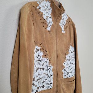 Neiman Marcus exclusive Jacket ten Suede Leather cutout Lace Sz 12
