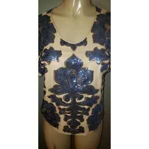 Neiman Marcus for Target Tracy Reese Blouse XS Tan Blue Sequin Light party