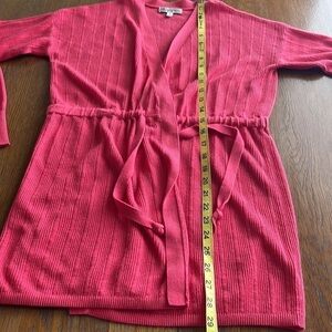 Neiman Marcus open cardigan with tie at waist long sleeves coral color size S