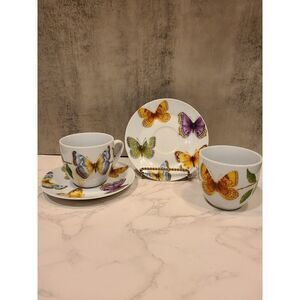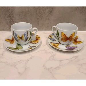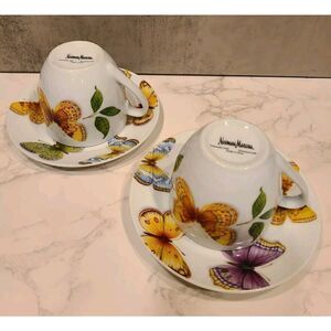 Neiman Marcus set (2) Butterfly Tea Cups saucers 8 oz | 3"H Porcelain Coffee