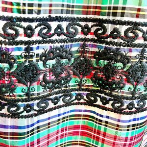 Neiman Marcus vintage plaid maxi long skirt embroidered red green small