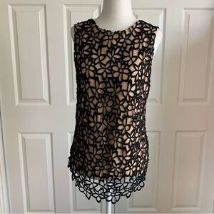 Super pretty floral crochet front top. It was done for a Neiman Marcus x Target Collab a couple years back by Lela Rose. The nude under-fabric is silk and fully lined and the front is a black crocheted floral. It’s so pretty and looks beautiful alone or layered. In great condition. No stains or holes. 17” pit to pit, 23” to bottom of lining, 25” to bottom of crochet.