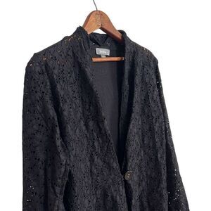 Neiman Marcus Mesh Floral Lace One Button Long Sleeve Blazer Black Large