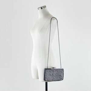 Neiman Marcus Micro Beaded black & silver clutch bag with chain