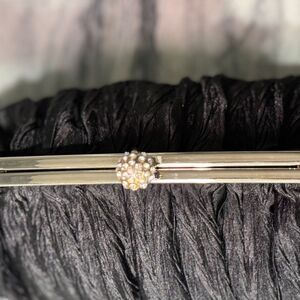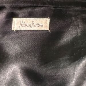 Neiman Marcus Ruched Black Evening Bag/Clutch W/ Long Silver Colored Metal Strap