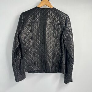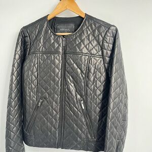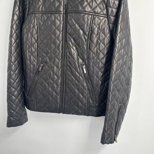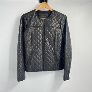 Neiman Marcus Womens Full Zip Quilted Stud Trim Leather Jacket Medium