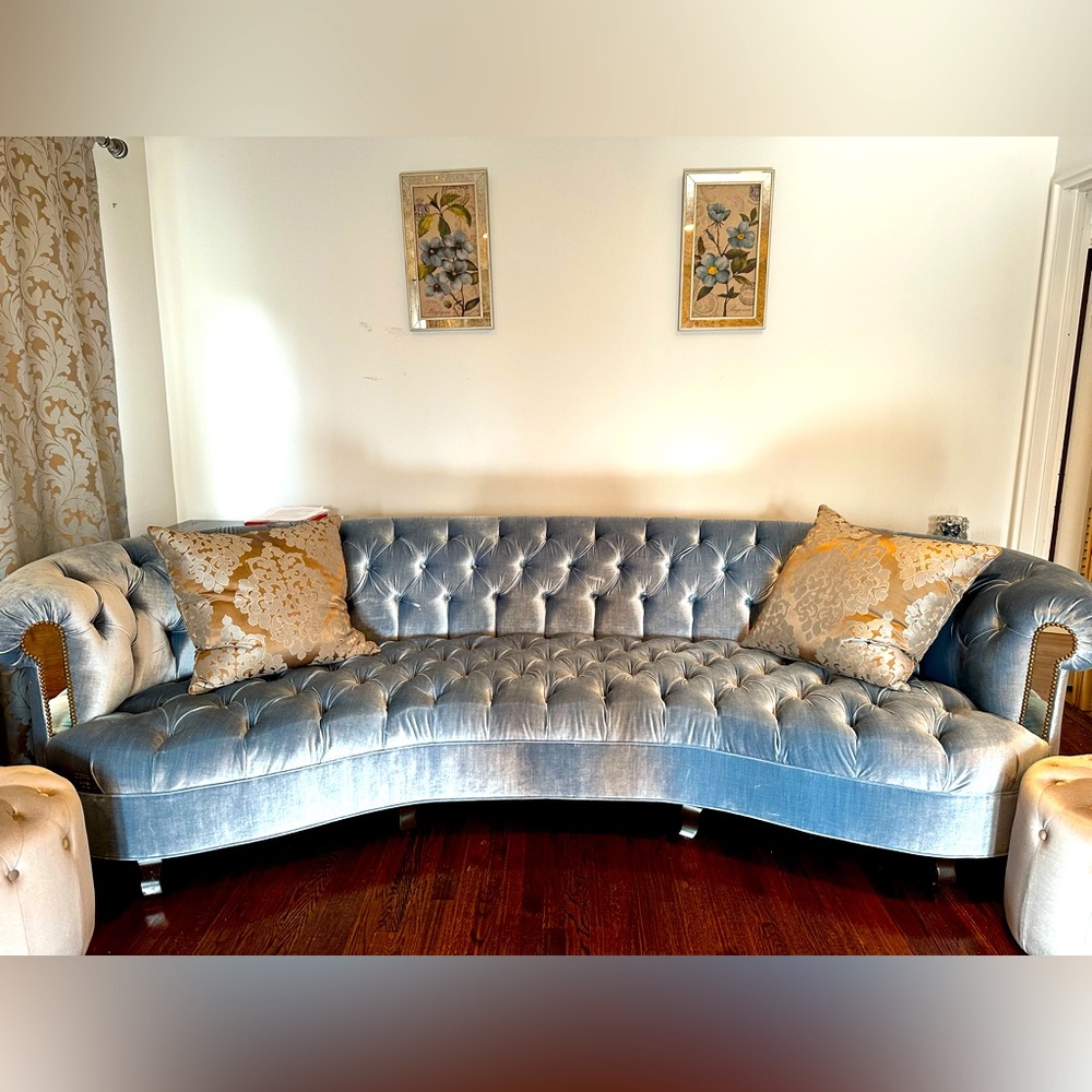 Hello how old is the sofa? And does it have and rips or tears… where would it be getting shipped from?