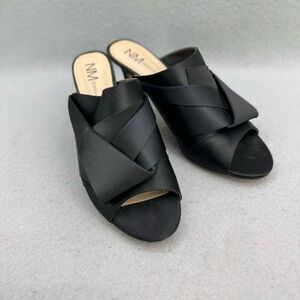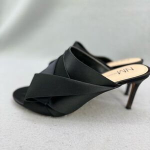 Neiman Marcus Black Satin Slip-On Mules Heels Size 10