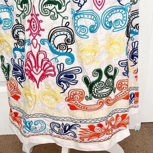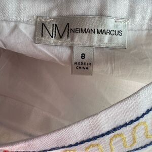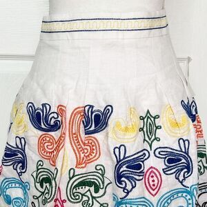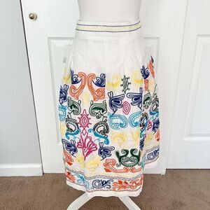 Neiman Marcus NWT White Linen MIDI Skirt with Embroidery Size 8