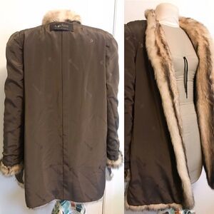 Gorgeous and luxurious natural Fitch fur coat. Clean and soft fur that is a natural cream and brown. I love the slits at the side. You will not find one this pristine! Jacquard lining with the brand sorbara. No clasps and there is a hidden pocket on one side where the lining and fur meet. The fur and lining are in excellent condition with no signs of wear or odor. This would retail at upper $4,000’s, vintage. Treat yo self! Open to offers.