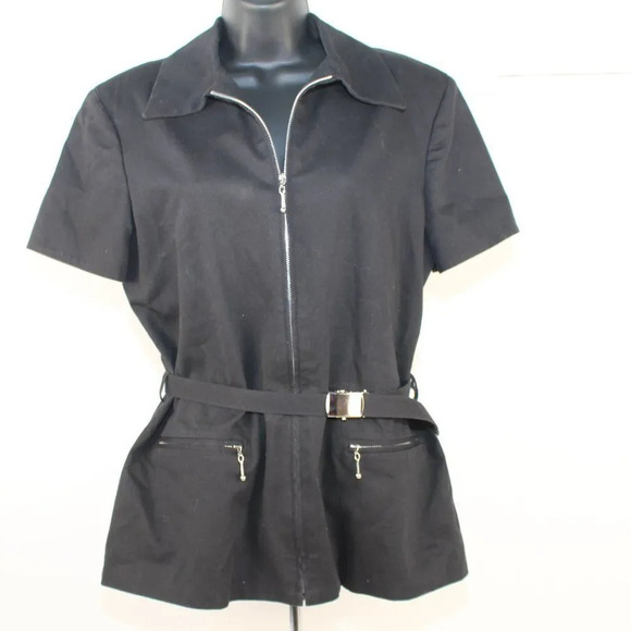 ladies black Neiman Marcus full zip top size 12 with adjustable belt in great condition.