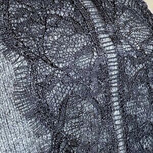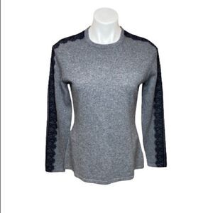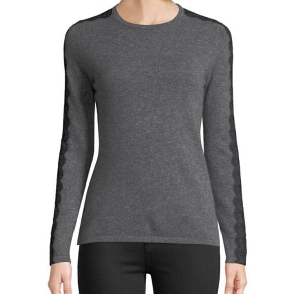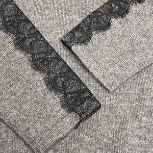 Neiman Marcus the cashmere collection gray with black lace trim sweater M