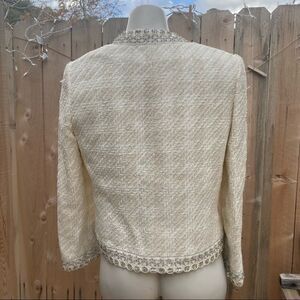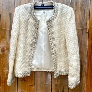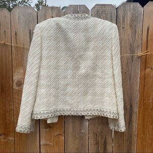 Neiman Marcus white tweed metallic thread blazer size 4