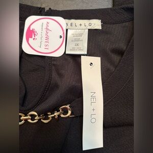 Nel + Lo Black and Gold Cut Out Blouse with Flowing Fabric size 2X