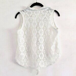 Nella Fantasia Tank Top S Knit Mesh Front Tie White Coverup Vacation Trip Swim