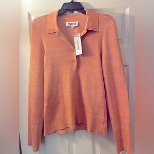Partow Josie ribbed silk & cotton blend polo sweater sz L