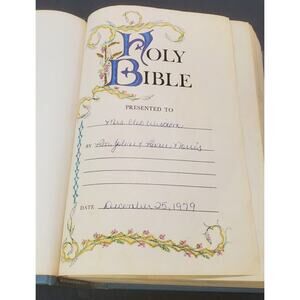 2. The first page where the bible is "presented to" is personalized with names and a date.