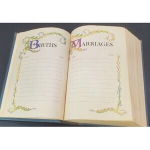 PRE-OWNED and in GOOD, vintage condition. With the exception of the page where the marriage is recorded, the binding on the Book is in OUTSTANDING condition for its age. Most of the wear is on the outside with shelf wear on the cover and some staining of the pages on the sides. Please look at the pictures carefully prior to purchase.