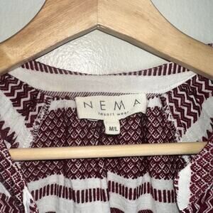 This Nema Resort Wear dress blends cozy comfort with effortless style. Crafted from a soft cotton‑acrylic knit in a rich burgundy and ivory geometric pattern, it features a relaxed tunic‑style silhouette with a loose M/L fit. Lightweight yet warm, it’s perfect for transitional seasons and layering. Style it with leggings and ankle boots for fall, or wear it solo with sandals for a laid‑back resort‑chic look.