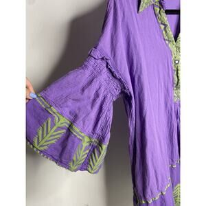 Nema Resort Wear Kally Embroidered Dress Kaftan Pink Green Large? Boho Beach. Has pockets. Vibrant colors with stunning embroidery.