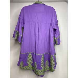 Nema Resort Wear Kally Embroidered Dress Kaftan Pink Green Large? Boho Beach