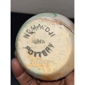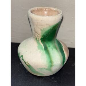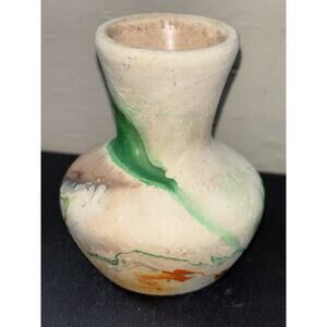 Nemadji Mini Vase Marbleized Beige Orange Green Vtg Pottery Swirled Southwestern