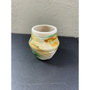 Nemadji Mini Vase Marbleized Teal Orange Brown Vtg Pottery Swirled Southwestern