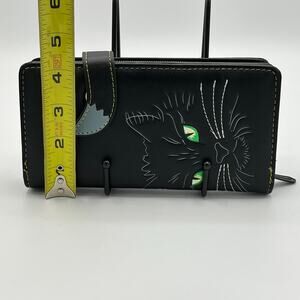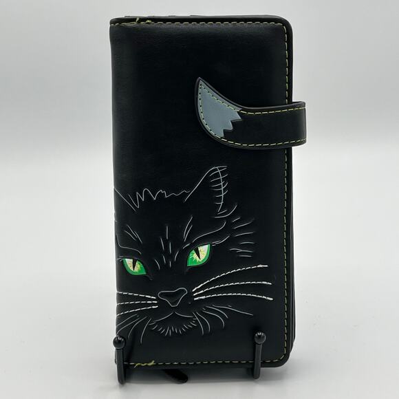 Nemesus Now Lucky Cat Purse Wallet Black Faux Leather Black Cat Green Eyes Tail