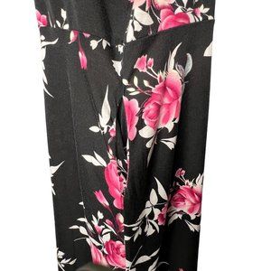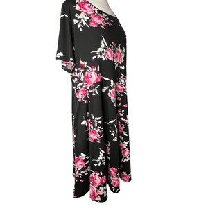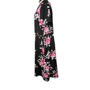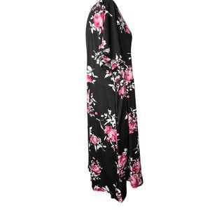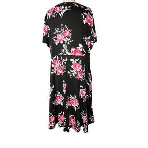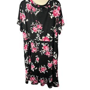 Nemido Women's Dress Size 26 Black Pink Floral Midi Short Sleeve Round Neck Pock