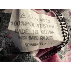 Stylish black and pink floral Nemidor dress in size 26. Features a stretchy polyester fabric, side pockets, short sleeves, and a rounded neck in a midi style. Machine washable. Made in China.